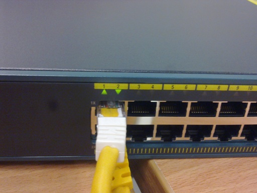 เสียบแล้ว port 1 สีเขียว port 2 สีส้ม ซึ่ง STP มันทำงานถูกต้อง อะอะ confirm ซะหน่อยด้วย command